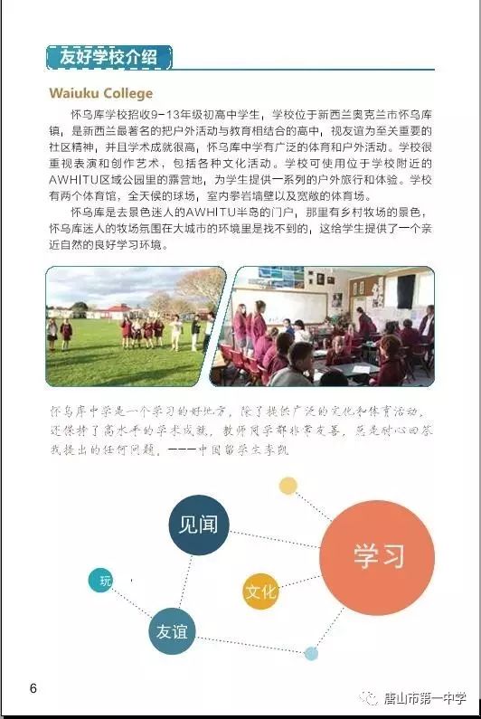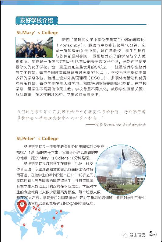 2015年5月,我校与新西兰圣玛丽中学建立姊妹校关系,并启动了互派教师、学生进行短期交流的活动。