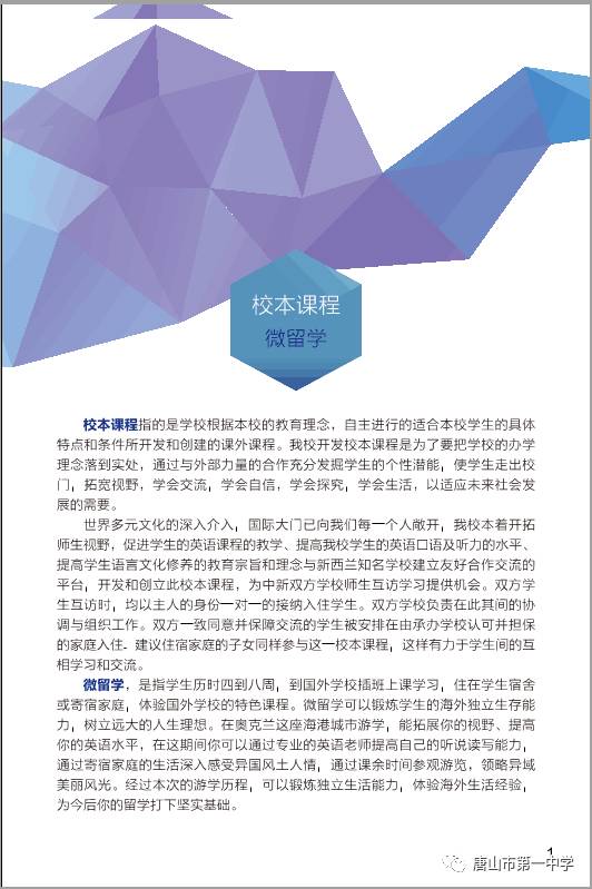 2016年暑假,我校首批师生代表团赴圣玛丽中学参加“微留学”体验活动。我校首位交流教师、微留学带队江晖老师评价说:“这一个月的交流生活让我获益匪浅。对于学生而言,这个微留学项目更有诸多优势----一个月时间可以比较全面充分地了解新西兰的情况;深入学校、深入班级学习,了解留学生在国外的学习情况;更重要的是住在寄宿家庭,可以比较充分地了解国外的生活习惯,生活理念;同时又可以借助周末旅行,观赏自然风光,了解当地文化。”