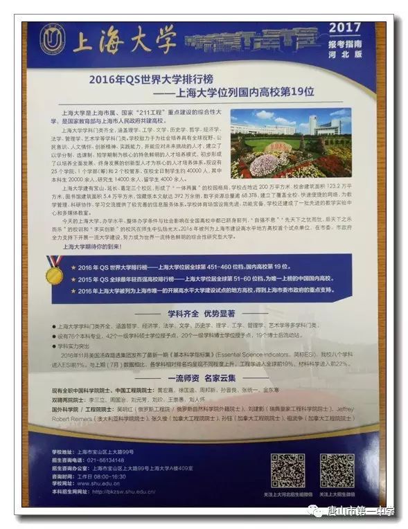 3月31日,上海大学河北省招生组组长傅燕鸣教授到我校做招生宣传,部分高二、高三学生参加了宣讲会。会上,傅教授介绍了上海大学的历史沿革,优势专业,钱伟长学院,等等,对唐一进入上大深造的学子给予了高度评价。傅教授的详细介绍使得在现场聆听的学生对上海大学有了更加深入的了解,钱伟长学院的先进办学模式更是受到了重点关注,宣讲效果良好。会议结束前,傅教授与学生们进行了亲切地交流,约定6月24日的高招会再见,特别希望优秀的唐一学子能够选择上大,成为钱伟长学院的学生。此外,两校还就上海大学在唐山一中设立“上海大学优秀生源基地”达成一致意见,择日将举行挂牌仪式。”