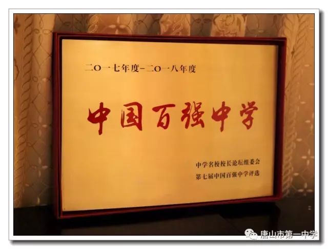 2017年7月10日,第七届《中国百强中学》在北京友谊宾馆贵宾楼发布,六十余所中国各省市最好中学到会,同期举行第七届中学名校校长论坛,我校党委王卫国书记应邀出席并代表唐山一中接受此项荣誉。