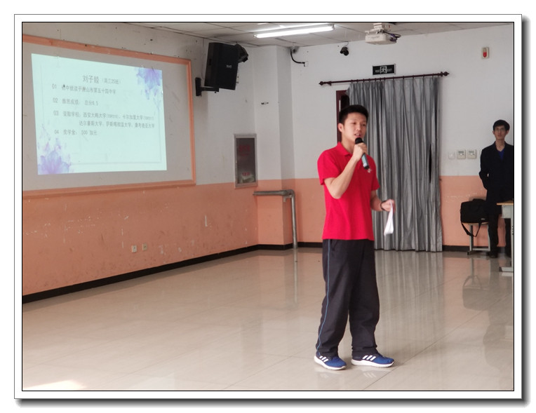 高三年级梁可心、刘思哲、李建言和刘子睦作为学生代表和各位家长和学生交流了中加班学习的体会和感受。四位同学大方得体、思路清晰,得到了家长和学生的一致好评。高三张天怡同学家长作为代表和家长分享了选择就读中加班的初衷和三年来孩子的变化与成长。