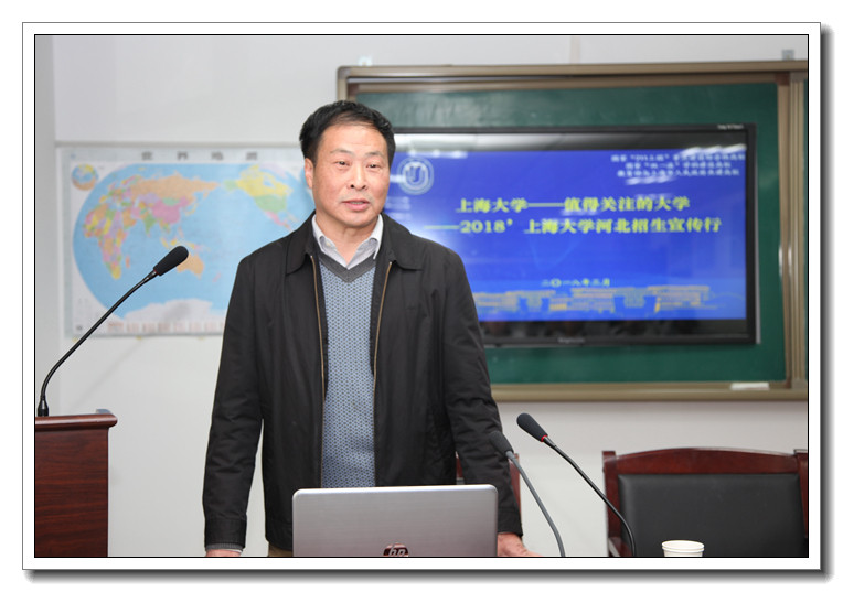 授牌仪式后,傅教授以《上海大学——值得关注的大学》为题,面向高三学生就2018年河北省招生情况作了专题讲座。傅教授在讲座中详细解读了上海大学的发展历程、招生政策、近几年录取分数线,会后耐心解答了同学们提出的各种问题。