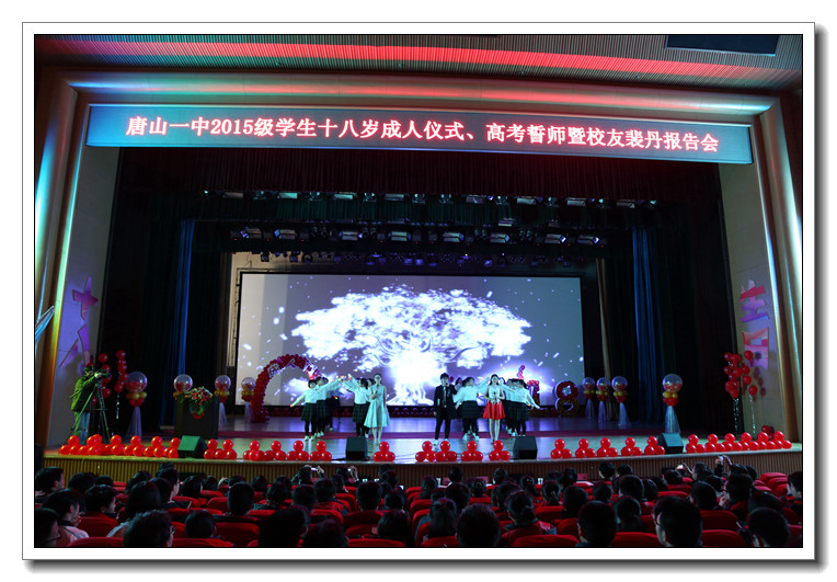3月15日下午4点,“唐山一中2015级学生18岁成人宣誓大会暨优秀校友裴丹报告会”在唐山一中礼堂隆重举行,1200多名高三学子共同度过十八岁生日。唐山一中92届校友裴丹博士、唐山市教育局副局长周燕来、团市委学少部部长李丽、唐山市文明办未成年人工作处处长李映艳、家长代表唱洪先生以及唐山市部分初中学校的校长等都应邀出席了此次活动。唐山一中团委书记赵雅君主持了本次大会。