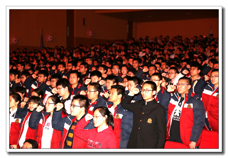 在这个特殊的日子,孩子们收到了好多份让他们惊喜又感动的生日礼物——来自老师们的视频祝福,来自家长代表的现场祝福,一本由班主任老师亲自交到手里的《成人纪念册》,一首由高三教师们深情朗诵的诗歌,来自刘长锁校长的生日寄语,还有优秀校友裴丹博士带来的《追逐梦想 造福社会——AI时代的年轻人如何选择自己的人生轨迹》专题报告!这是一个让孩子们终身难忘的生日,他们深深懂得这一份份厚礼中蕴藏着的浓浓深情和殷殷期盼。9名同学代表全体年满十八岁的高三同学以他们的方式表达了对父母、老师和学校的感恩,并表示在新的人生征程上学会“感恩”,努力“成长”,担当“责任”!一首激情昂扬的《十八岁赞歌》,把大会推向了高潮。带着激动澎湃的心情,学生会主席赵奕飞带领高三全体年满18岁的同学面对国旗庄严宣誓。最后,高三学生以班为单位进行了慷慨激昂的“高考誓师”,全场热血沸腾、豪气干云。