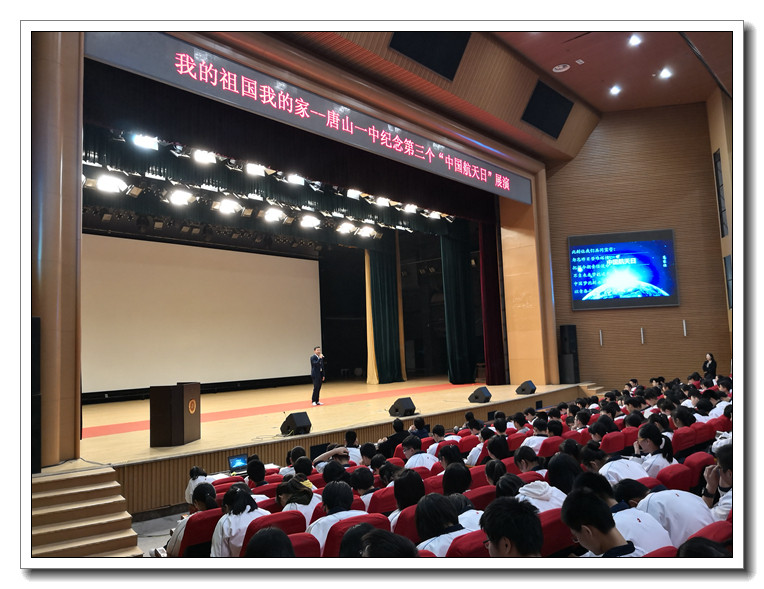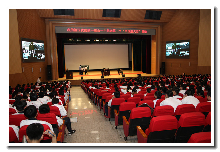 2018年4月24日下午,高一高二年级部联合举办了“我的祖国我的家——唐山一中纪念第三个‘中国航天日’展演”活动,我校王卫国书记、丁岚副校长出席,高一的一千多名学子在礼堂观看展演。