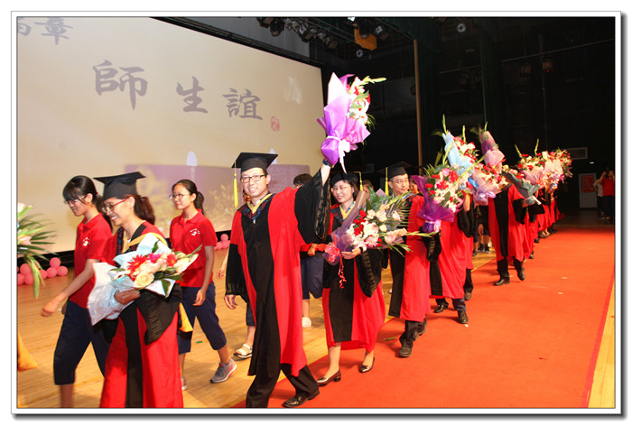 鲜花、掌声、泪水、拥抱,回忆、留恋、憧憬……,1000多名高三毕业生和他们的老师共同演绎着高中阶段“最后一课”——高中毕业典礼。这一课由学生主导。同窗情、父母恩、师生谊、桃李盟……在电子屏幕和舞台上展现的毕业典礼4个篇章,全是学生们在高考后自编、自导的。