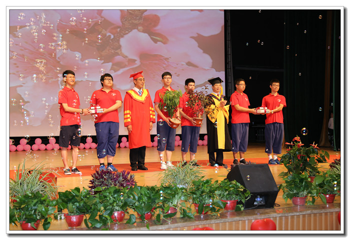 感恩、奋进,是学生们设计的毕业典礼主题。当12名教师应学生邀请,登台激情朗诵自创的教师之歌时,当学生们从校长刘长锁手中接过毕业证书时,台下掌声雷动,学生们铆足了劲儿要把自己对母校的不舍和感谢、对未来人生的憧憬表达出来。