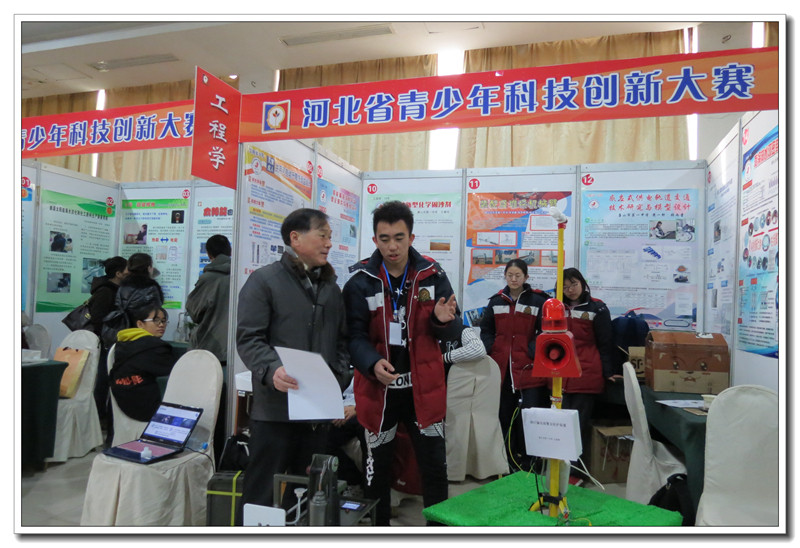 2018年第33届河北省青少年科技创新大赛由河北省科协、省教育厅、省科技厅、省环保厅、省体育局、团省委和省妇联共同主办,大赛以“创新?体验?成长”为主题,以培养青少年的创新精神和实践能力、提高青少年的科技素质为目的,为全省青少年和科技辅导员搭建一个科技创新活动成果展示和交流的平台。本届大赛吸引了全省43万余名青少年参加,收集各类作品22192项。在各市评审的基础上,推荐上报2201项作品参加省级评审。在省决赛中,我校学生凭借优秀的创新作品,饱满的精神状态赢得评委的肯定与赞赏,最终有49项作品获得一等奖,66人夺得金牌。