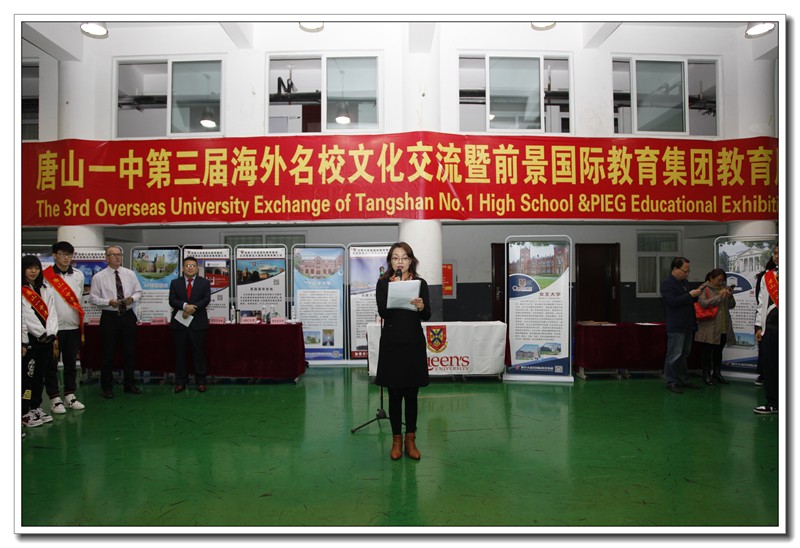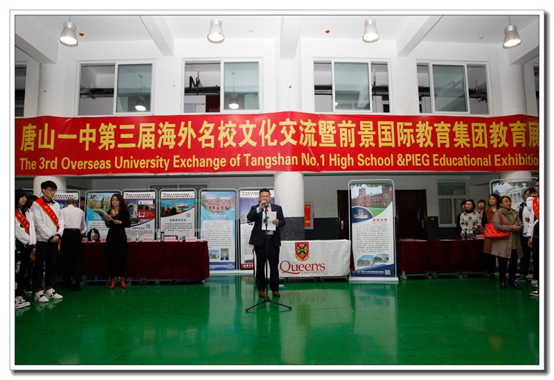 2018年10月21日,唐山一中第三届海外名校文化交流暨前景国际教育集团教育展在国际交流中心隆重举行。来自包括加拿大女王大学、渥太华大学、康考迪亚大学、多伦多电影学院,美国迈阿密大学等近40所国际名校参加了本次教育展。