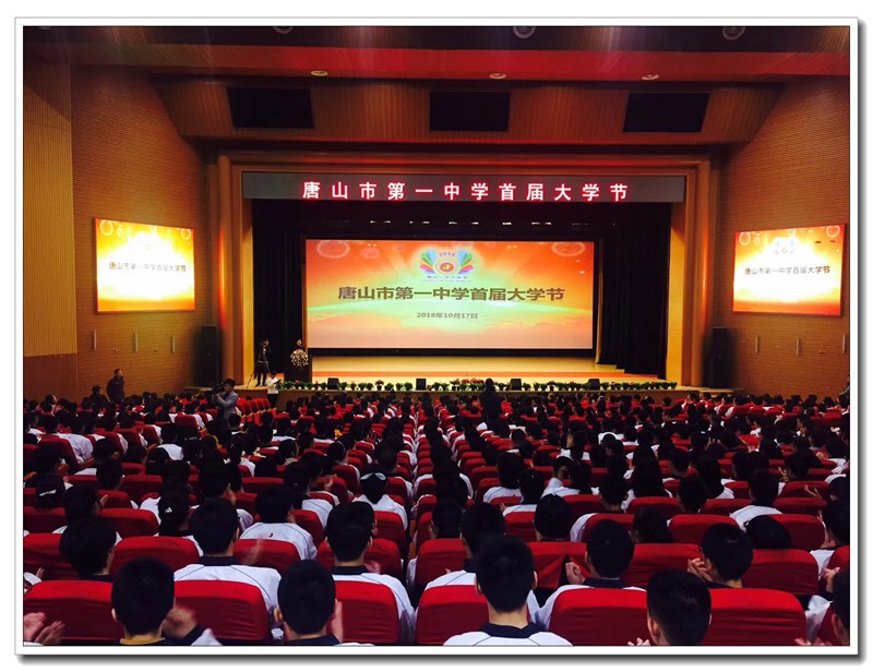 金秋如画的唐山一中校园迎来了首届大学节。10月17日上午,我校首届校园大学节开幕式在校内艺术活动中心隆重举行。参加开幕式的有唐山市教育局周燕来副局长、全国各重点高校的招生代表、高二年级学生、我校部分领导老师以及唐山电视台、长城网、燕赵都市报等多家新闻媒体的记者。