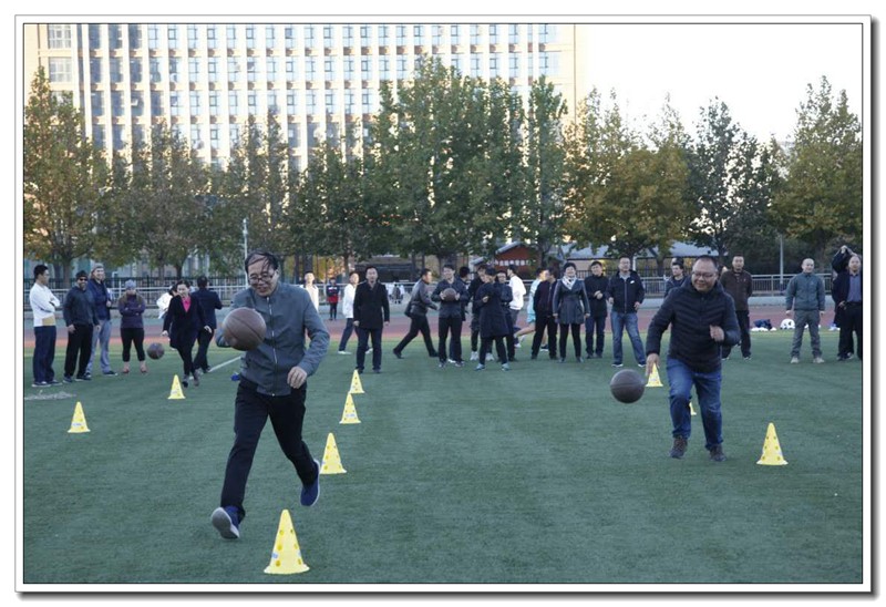篮球运球接力和足球绕杆射门比赛,比的不仅是体力,更是技术,是配合。只见有的老师技术娴熟,人球一体,配合默契;有的则是手忙脚乱,慌忙不已……比赛紧张有序,欢声笑语不断。