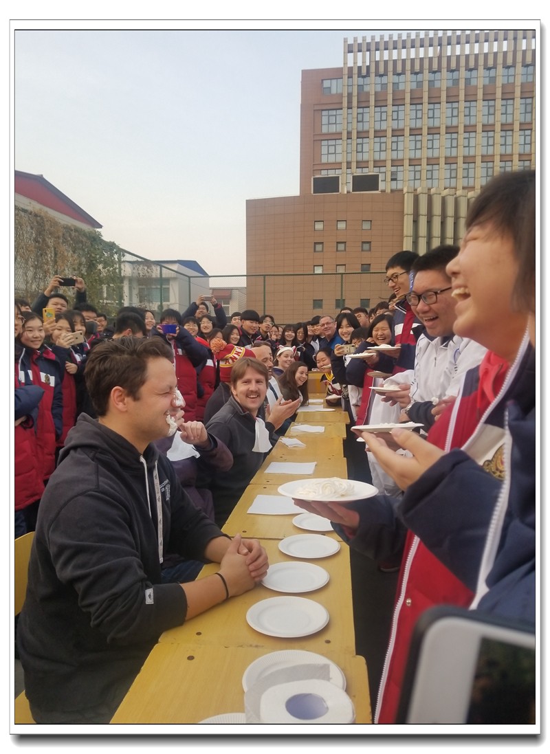 周五下午俱乐部时间,加方校长瑞恩先生对“慈善月”活动的总体情况进行总结;克里斯老师和大家分享了慈善捐款成果,并对同学们的积极参与表示感谢。随后,加方教师按照约定兑现了承诺,学生们纷纷举起手中的蛋糕向加方教师脸上抹去;“可怜”的亚力克斯老师被一群小小“理发师”剃出年度最美发型。慈善捐款活动在一片欢声笑语中结束。