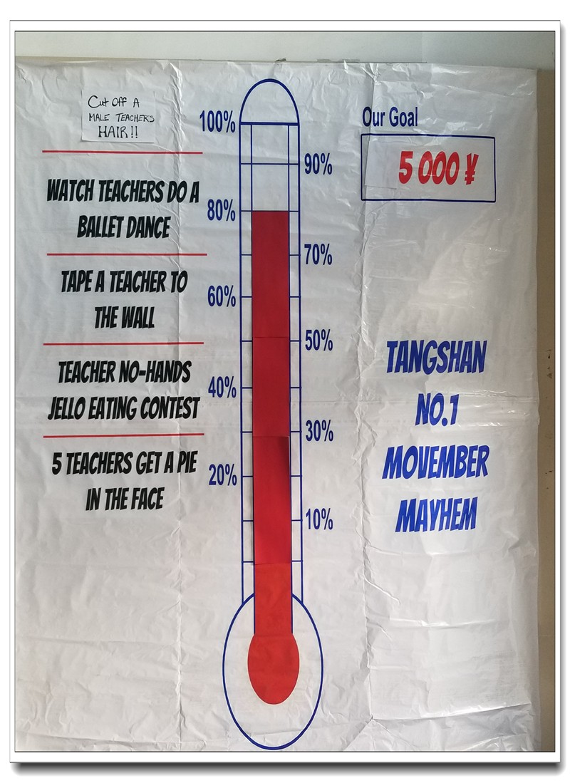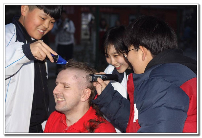与普通的慈善捐款活动不同,本次捐款活动在让学生热心助人的同时,还能充分体会参加活动的趣味性。加方教师采用“目标激励”的方法鼓励学生积极参与。比如:实现捐款目标的20%,学生可以将奶油蛋糕扑到老师脸上;实现捐款目标的80%,将有男性教师表演芭蕾舞;完全实现捐款目标,将由学生剃光一名男性教师的头发等。最终,在学生的热情参与下,本次活动实现了既定捐款目标。其中,高一16班捐款数额高居榜首。