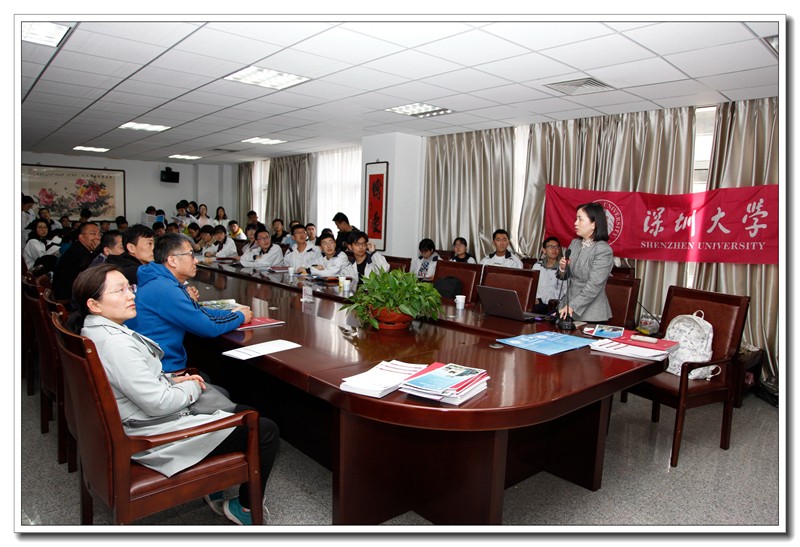 座谈会后,娄燕副院长为我校高三部分学生和家长做了招生宣传讲座,详细介绍了深圳大学的建校发展、专业设置、就业方向、学习环境、生活设施等学生们感兴趣的情况,宣讲会后耐心解答了学生和家长们的提问。