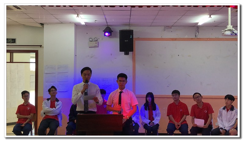 二、竞选过程严谨有序,亮点突出。此次竞选基本分为动员报名、宣传展示、演讲投票三个阶段。每个阶段逐项推进,依次衔接,确保了参选同学有条不紊参与,全方位多角度展示自身才能。如在宣传展示阶段,参选同学纷纷设计制作竞选海报,亮明自己的竞选纲领,主题突出,态度鲜明;在5月31日的演讲投票中,参选同学面对加方教师和高一、高二年级全体同学全英文发表演讲,语言流利,条理清晰,声情并茂,神态自然,既展示了中加学生较高的英语水平和出色的演讲才能,又体现了中加国际班良好的教学效果。