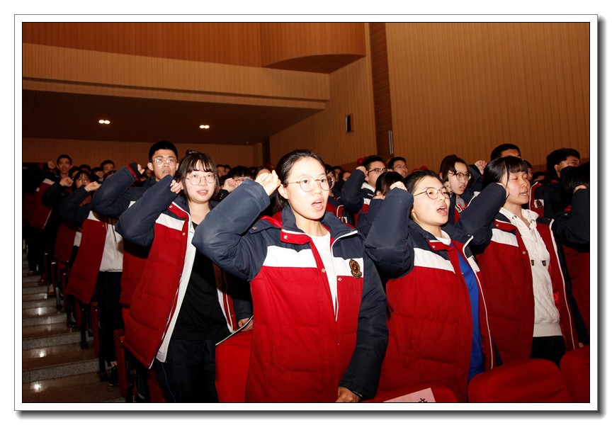 带着激动澎湃的心情,学生会主席付一诺带领高三全体年满18岁的同学面对国旗庄严宣誓。大会最后,高三学生以班为单位进行了慷慨激昂的“高考誓师”,全场热血沸腾、豪气干云。