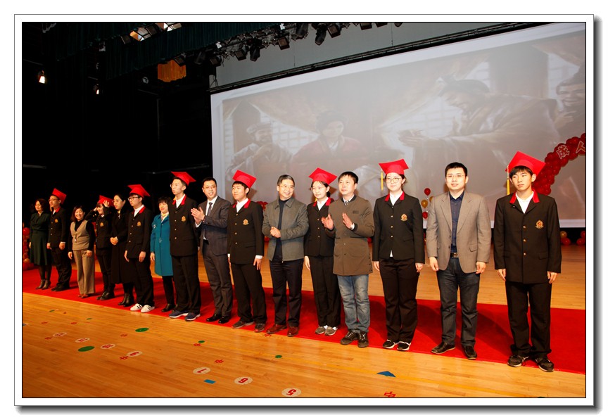 伴着一首《和你一样》,高一的同学们手托蜡烛翩翩起舞,为成人仪式揭开了序幕。在全场参会人员唱完雄壮的国歌之后,团市委副书记王基扬为大会作了热情洋溢的致辞,表达了对年满18岁的高三学子的祝贺和期望。一段汇集了同学们成长足迹的老照片回顾,让在座的同学感慨万端。在行加冠礼之前,语文组李艳华老师为同学们介绍了古代的冠礼笄礼仪式,带同学们体悟几千年的传统礼仪内涵。8名学生代表全体年满十八岁的高三同学以他们的方式表达了对父母、老师和学校的感恩,并表示在新的人生征程上学会“感恩”,努力“成长”,担当“责任”!