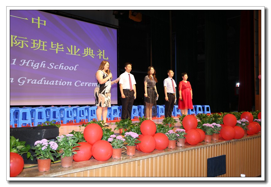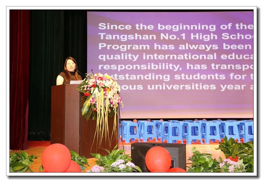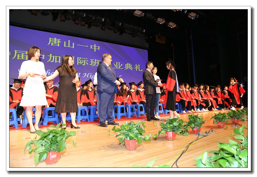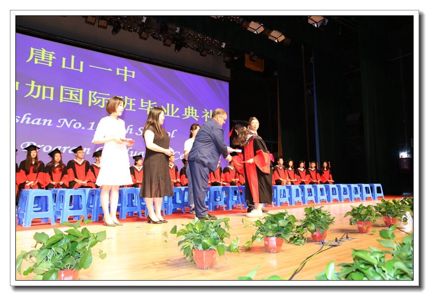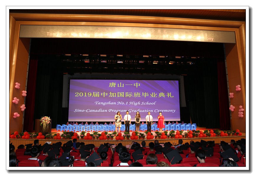 唐山一中校长刘长锁、党委书记王卫国、副校长丁岚、加方校长Gerard Ryan、英华教育科技有限公司投资人韩梦茹、前景远大国际教育集团总监谢静以及全体中层领导应邀参加了本次毕业典礼。高三年级班主任老师和加方教师Mrs.Haggerty主持了本次典礼。