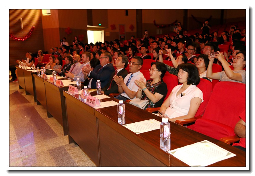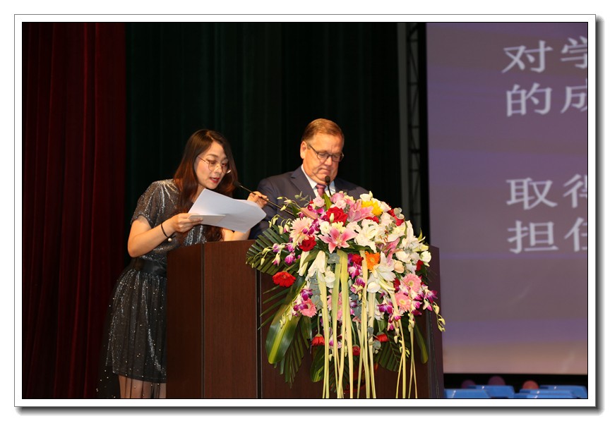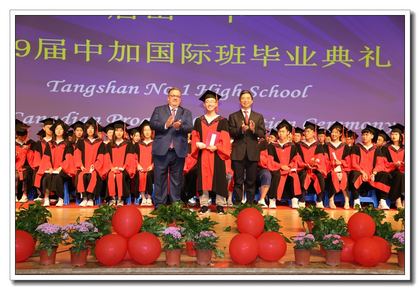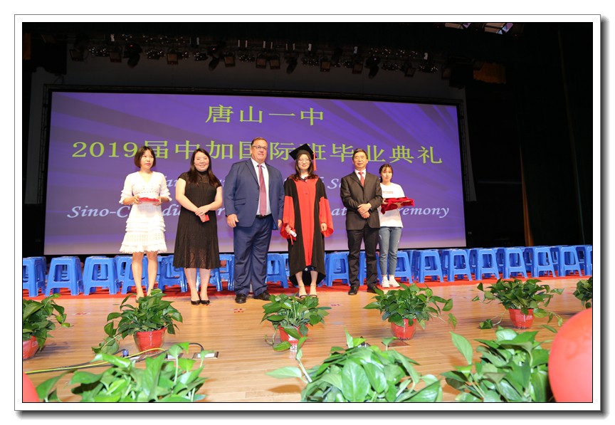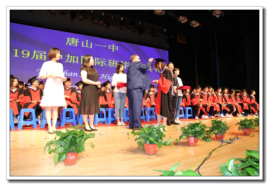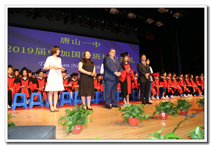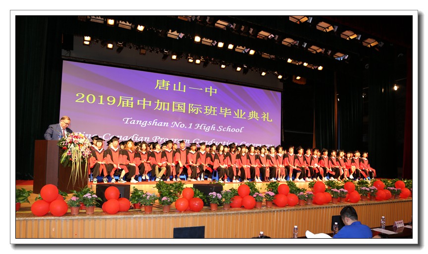 最后,加方校长Mr.Ryan向全体毕业生致辞。他带领大家一起回忆了美好的三年高中生活,告诫中加学子高中毕业是一段旅程的结束,也是新的篇章的开始。虽然大家即将天各一方,但大家永远是唐山一中2019届中加国际班的一员。加方校长用情至深,几度哽咽,在离别之际,也表达了对唐山一中深深的留恋之情。加方校长在致辞最后即兴演唱了一首英文歌曲表达了对中加学子的祝福!