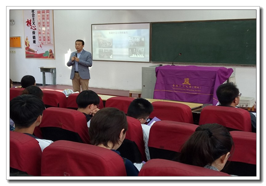 10月14日,香港中文大学(深圳)河北招生组王宜伟、马雯欣两位老师莅临我校,面向高三部分学生及家长进行了招生宣讲。