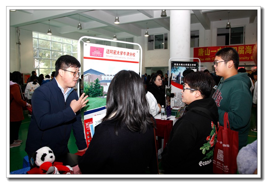 2019年10月26日,唐山一中第四届海外名校文化交流暨前景国际教育集团教育展在国际交流中心隆重举行。加拿大女王大学、渥太华大学、约克大学、多伦多电影学院,美国迈阿密大学等近40所国际名校参加了本次教育展。