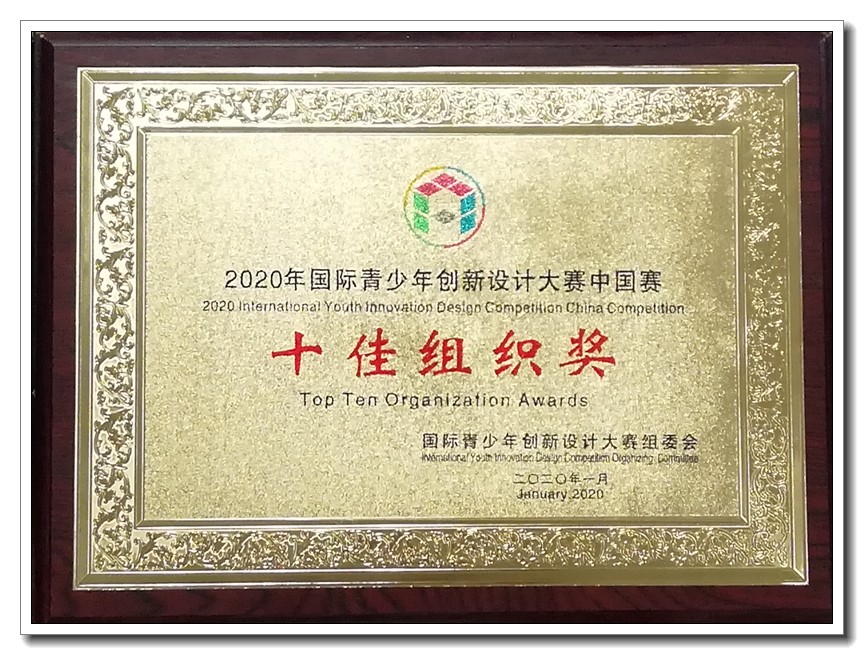 由于我校的突出成绩,被大赛组委会授予全国青少年创新设计大赛“十佳组织奖”(名列首位)。