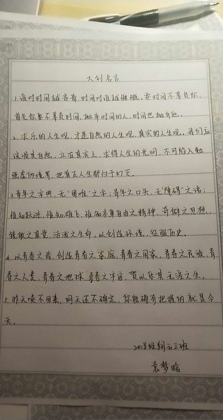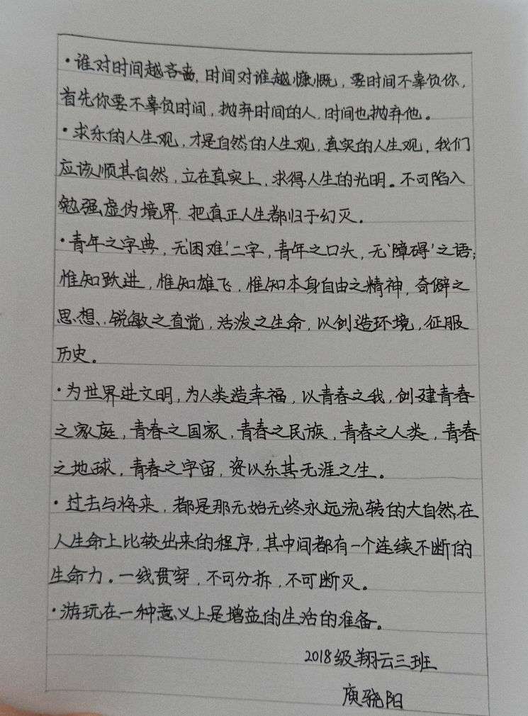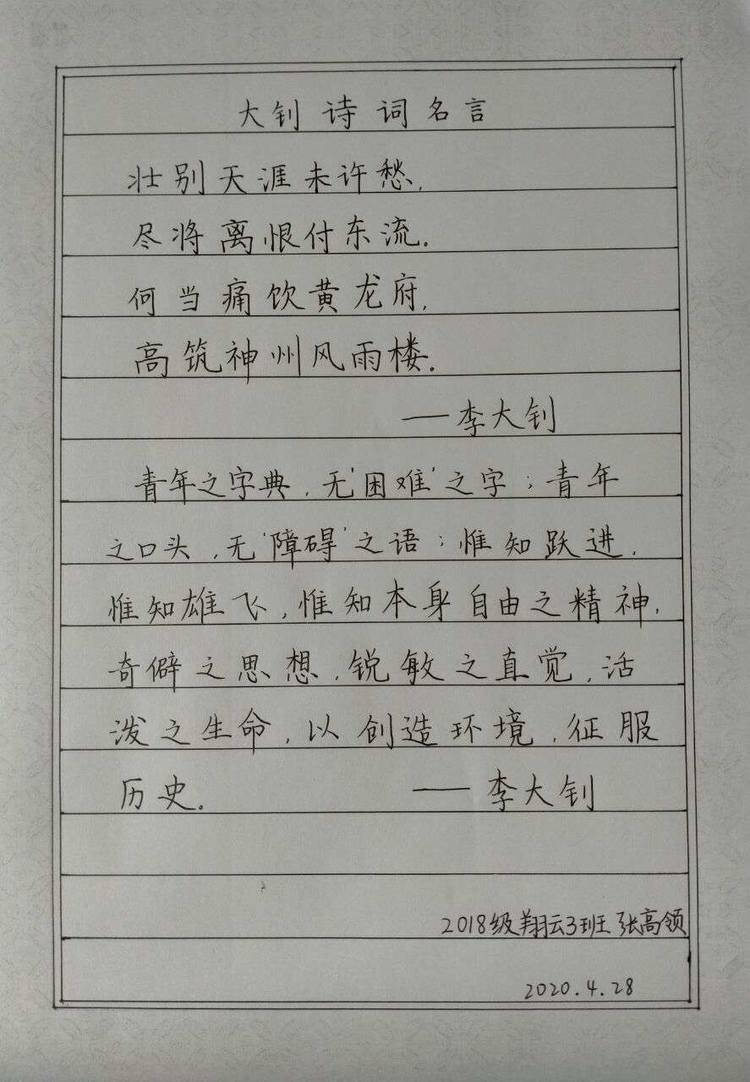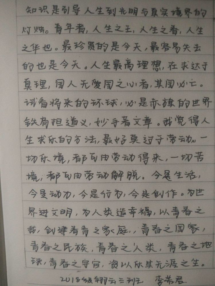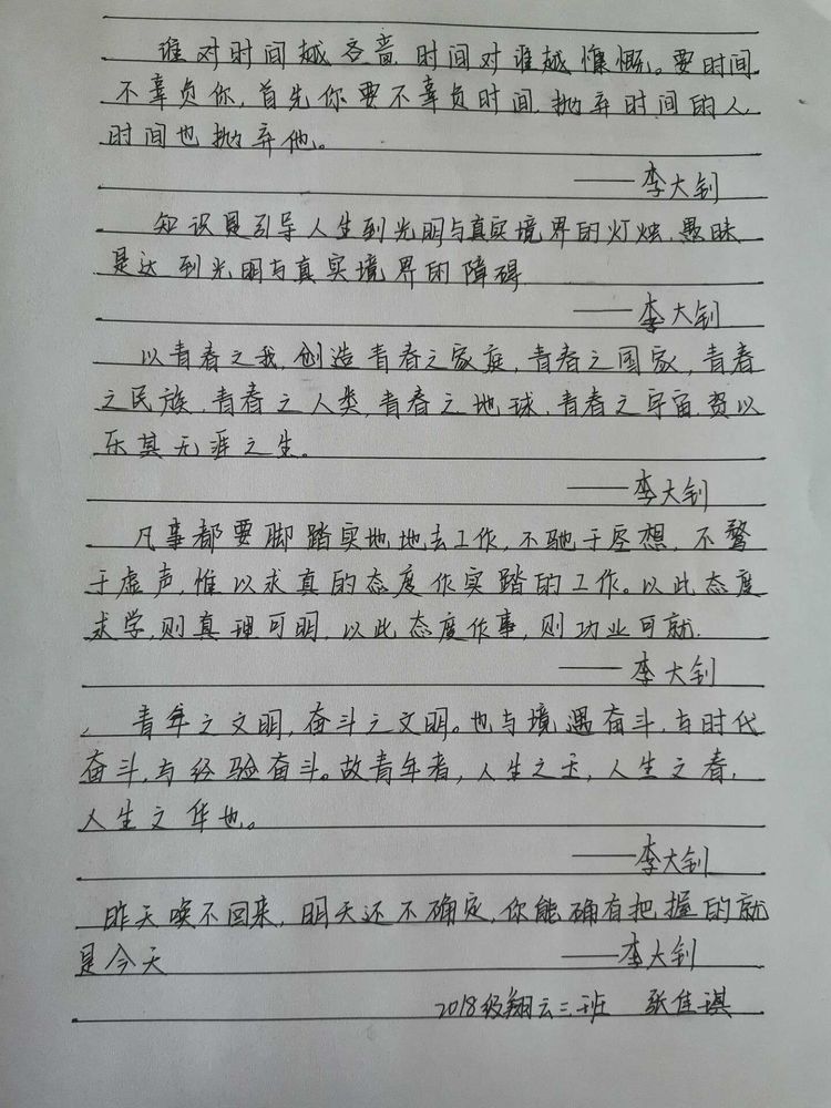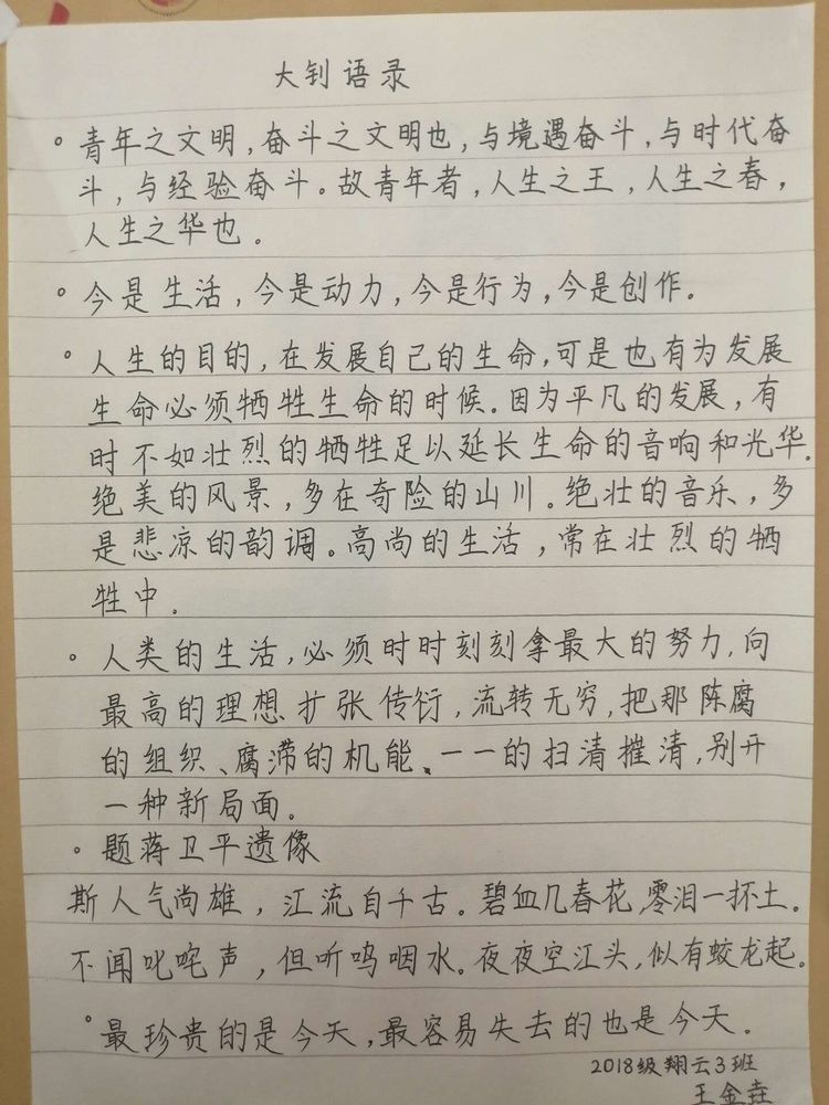 “最珍贵的是今天,最容易失去的也是今天。”大钊先生所言,时节不居,唯有把握现在,方有未来可期,“知识是引导人生到光明与真实境界的灯烛”,不断用只是丰满羽翼,才能翱翔天空,谨记先生教诲。