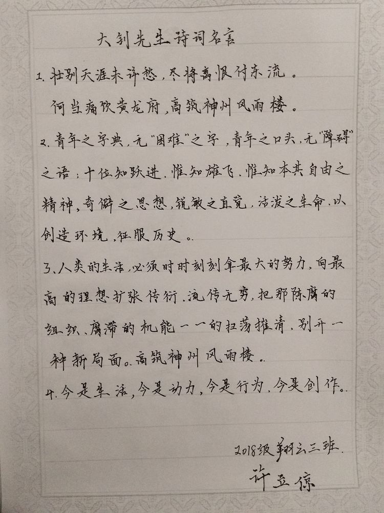 二、认真摘抄大钊先生的经典词作,进行展览学习