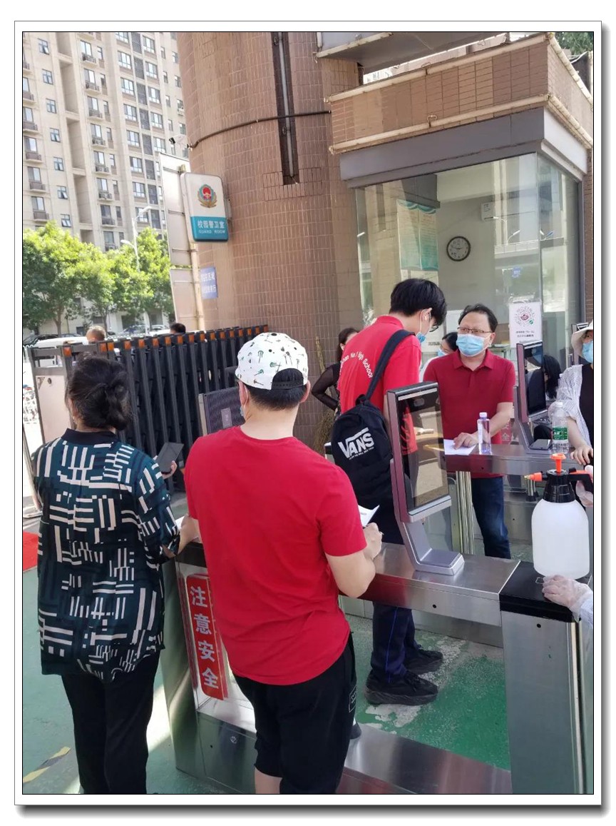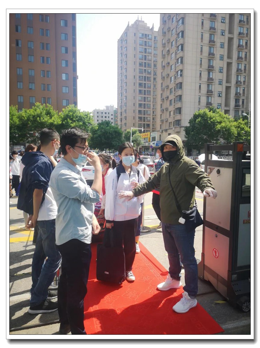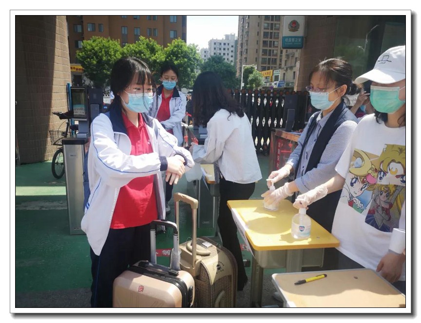 下午两点,高一的神兽们率先回笼。老师们组织同学们在校门口间隔排队,有序进入,依次进行行李消杀,手消毒,测量体温,登记体温等事宜。老师和志愿者同学们一起帮助行李多的同学特别是女同学搬运行李。同学们见到班主任倍感亲切,很多同学在很远的地方就和班主任挥手打招呼。