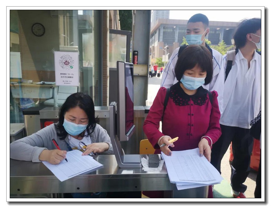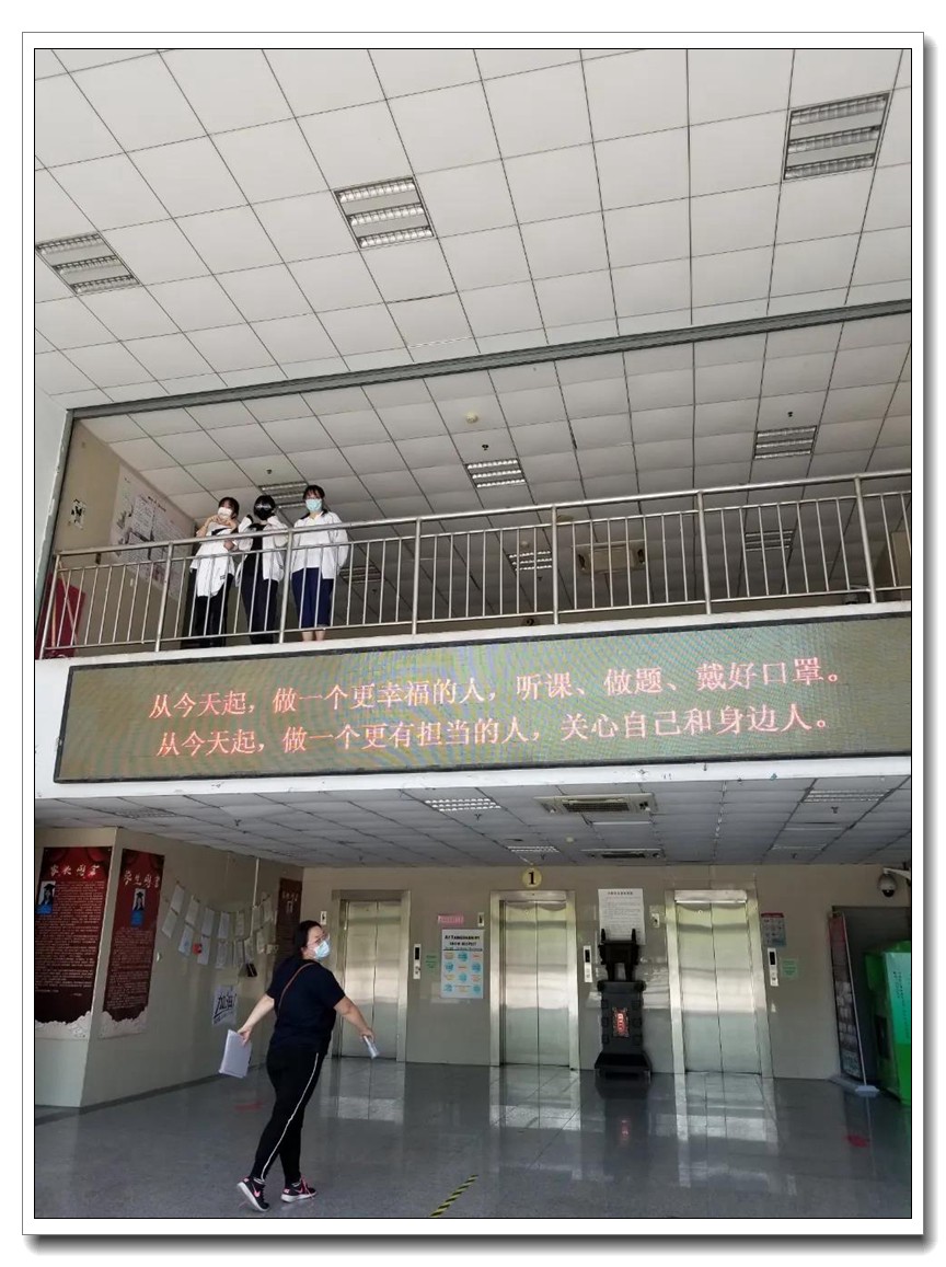 下午两点五十分,高二和高三的同学们按照规定时间也陆续返回学校。老师们马不停蹄地忙碌。同学们都很兴奋,努力配合各项工作,半小时的时间,两个年级的同学全部完成了安检,回到了温暖的校园。