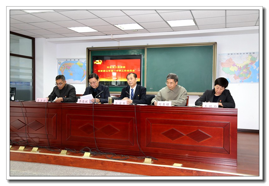 11月7日下午,市委第三巡察组巡察我校工作动员会在学校名师工作室隆重举行。中共唐山市委第三巡察组组长石方军,副组长王瑞玲,专员王金钟、高梅、张月明同志,市委巡察办李键同志,市教育局李连斌副局长及我校校级领导、全体中层干部和全体教研组长、备课组长参加了本次会议。动员会由唐山一中党委王卫国书记主持。