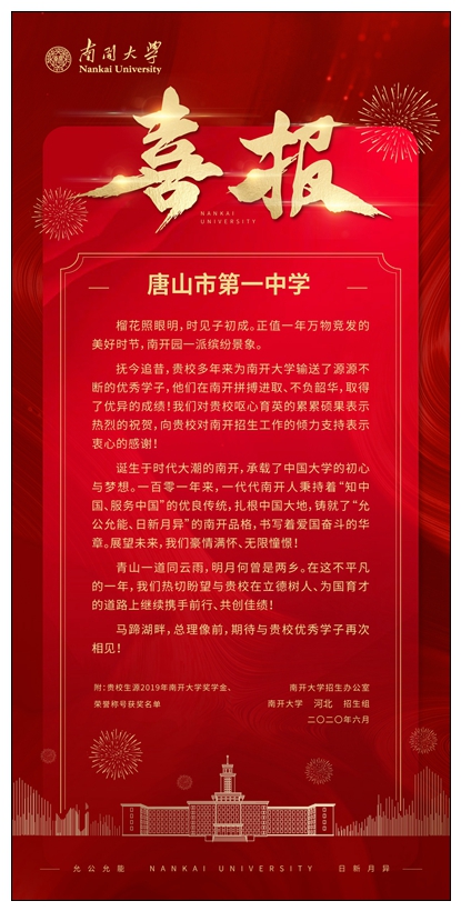 【 荣誉墙 】【 招生考试 】南开大学喜报