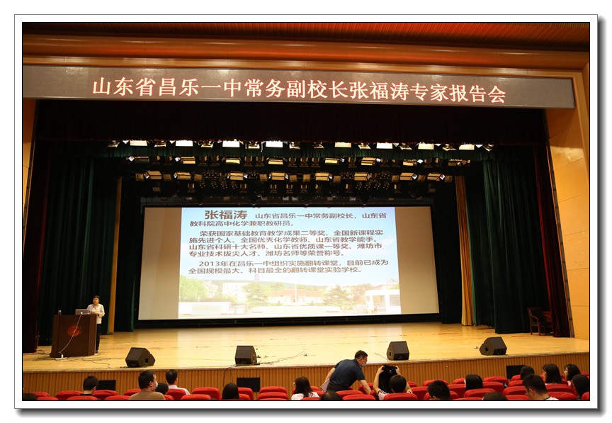 8月30日下午,我校有幸邀请到昌乐一中常务副校长张福涛为我校教师做了一场题为“基于中国高考评价体系的教学改进策略”的报告。本次报告会由科研处主任耿立志主持,学校领导王卫国书记、佘念利副校长,全体任课教师和唐山一中曹妃甸分校——枫华国际双语学校的领导老师,共计近三百人参加了本次报告会。