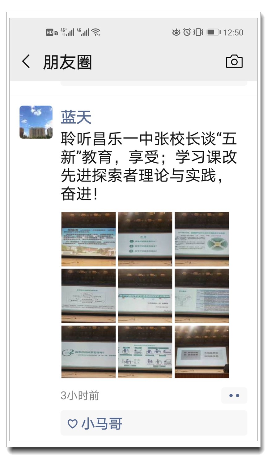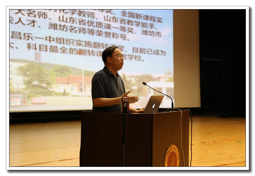 其次是激趣提效介绍翻转课堂。他从新高考背景下学生应达到的水平角度,具体解读学生怎么学、教师怎么教的教育本源性问题。结合昌乐一中近几年开展的“翻转课堂”教育实践,他指出,高考应从“必备知识、关键能力、学科素养、核心价值”几个方面下功夫,注重从知识到能力再到素养的深化过程,具体例举了从备课教研、到实践教学、再到考试检测的具体做法。