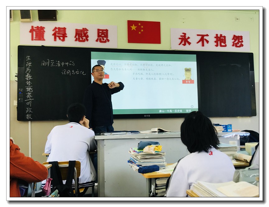 本次历史学科“共听一节课”的教研活动分为“课例展示、理论学习、议课研课”三个部分。首先,教研员和全体与会老师20余人共听唐山一中张钊老师的现场课——《明至清中叶的经济与文化》。张钊老师深入研究课标、整合教材内容,以真实历史情境为线索,通过层层递进的设问展开教学活动。其丰富的知识储备和精心的教学设计真正落实了历史学科核心素养,做出了很好的示范作用。