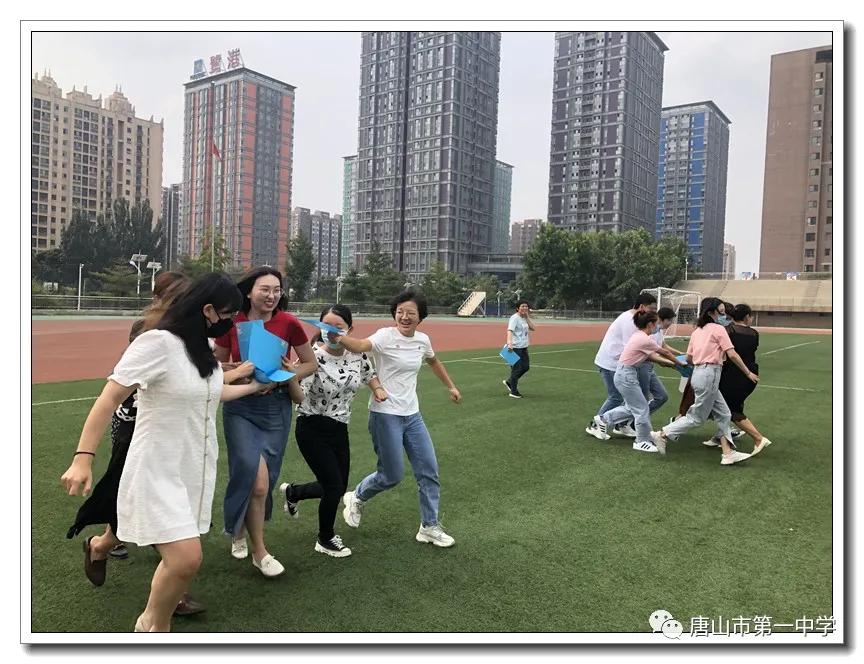 新学期开学,唐山一中迎来了富有青春活力的12名新入职教师。为了让他们能在短时间内熟悉教学环境以及学校文化和教育管理模式,尽快转换角色,积极投身到教育教学中。8月30日,教务处和办公室举办了新入职教师岗前培训活动。本次培训活动由教务处田立红主任精心设计,全程倾情主持。本次培训活动告别了以往传统模式,采用更适合青年人的接受的“很潮”的方式,比如青春团建小活动,校园游览与入职培训相结合。本次活动有五个环节。第一个环节在操场举行的团结协作又能很快彼此了解的小游戏。在游戏之前,大家进行了简短的自我介绍,然后田主任介绍游戏规则。各位老师积极参与活动,在短时间内大家增进了了解,共同协作完成任务。