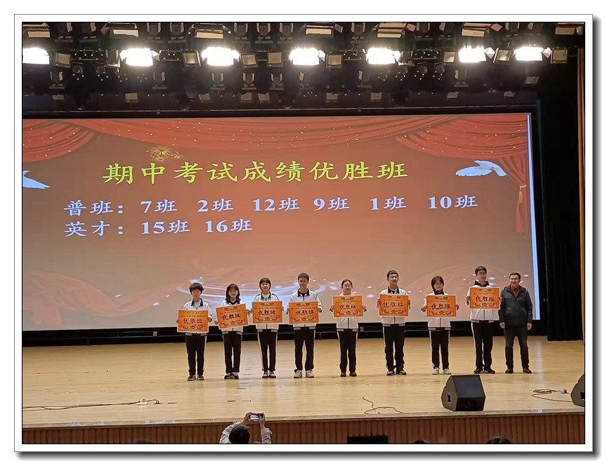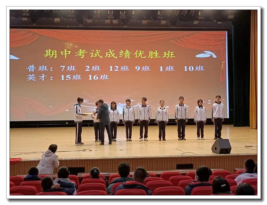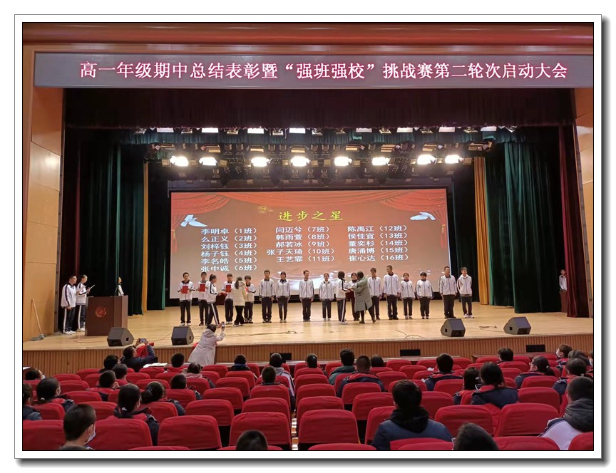首先发言的是期中考试进步名次最多的高一2班么正义同学,他说:“偶尔的考试失利并不可怕,只有找到学习漏洞,将失利的痛苦化为学习的动力,亡羊补牢,坚定信念,才能在新一轮的考试中取得佳绩!”