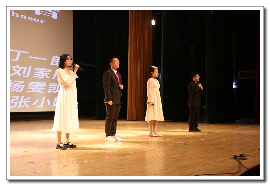 联欢会在合唱《我们都是追梦人》表演中拉开帷幕。放飞梦想的歌曲、劲爆的舞蹈、幽默的相声、动听的乐曲演奏......高一高二两场共25个节目,给现场所有观众带来一场精美绝伦的视觉盛宴!精彩的节目让同学们欢呼雀跃,时不时赢得满场的喝彩。高一联欢节目中高一14班班主任刘巍老师献唱一首《心有独钟》更是把现场气氛推向高潮!联欢会最后在缪斯社团动感的舞蹈《DUN DUN》中落下帷幕。