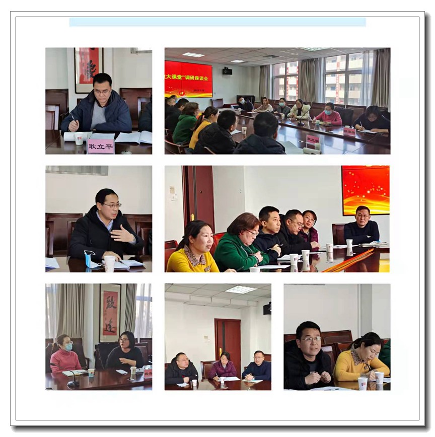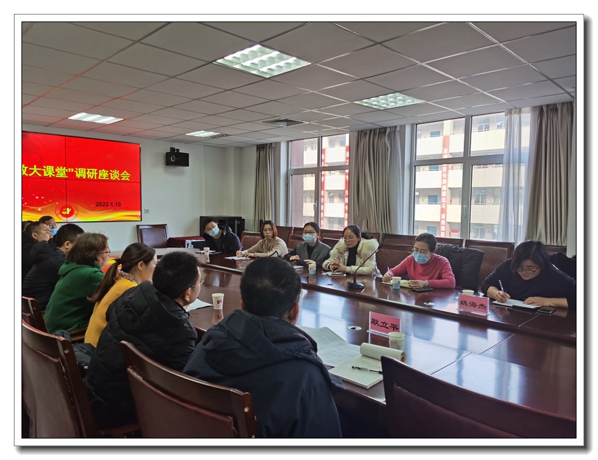 为全面深入落实好“思政大课堂”工作,1月10日上午,唐山市委宣传部政研会秘书长唐华、市教育局思政处四级主任科员姚海杰和唐山师范学院、唐山学院部分思政教师到我校进行“思政大课堂”调研座谈。我校党委书记周燕来、副校长耿立平、相关处室负责人以及部分思政课教师参加了座谈。