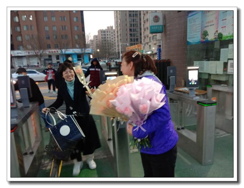 清晨迎接老师们的是娇艳的鲜花和亲切的笑脸。
