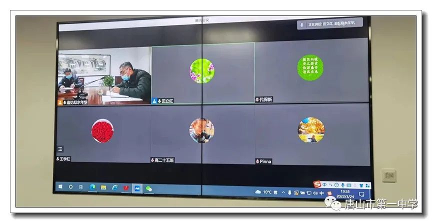 疫情防控形势严峻,停课不停学任务艰巨,为了更好推进线上教学,保障教学效果,唐山一中在3月24日晚上7:30,通过腾讯会议组织召开了以“强化督导 保障效果”为主题的线上教学推进会。唐山一中党委书记周燕来、校长王卫国、副校长耿立平、副校长佘念利和部分中层干部参加了会议。副校长佘念利主持会议。
