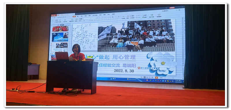 暑气尚未敛,起航新征程。为进一步落实学校德育工作,不断开拓德育工作思路,开阔班主任工作视野,提升德育队伍的专业素质,打造学校德育工作特色,2022年8月30日上午,德育处组织召开了2022-2023学年第一学期德育培训会。会议由德育处高爱国主任主持,学校党委书记周燕来、校长王卫国、副校长耿立平、副校长佘念利出席会议,学校全体教师参加培训。