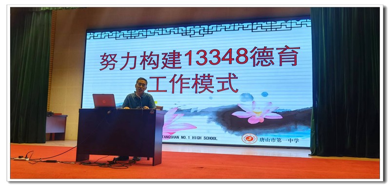 我校德育工作落实立德树人,坚持大德育观,努力构建13348德育工作模式,取得了一定的成绩。我校的13348德育工作模式:“1”----落实一个根本任务:立德树人。“3”----传承三种精神:大钊精神、钱学森精神、雷锋精神。“3”----坚持三个自我:人格靠自我塑造,智力靠自我开发,身心靠自我磨砺。“4”----践行唐山一中好学生标准:爱国、担当、自律、勤学。“8”----打造德育工作的八大工程。(1)砺志工程(2)健体工程(3)美育工程(4)劳动教育工程(5)生涯规划工程(6)心理健康工程(7)全员育人工程(8)家校共建工程。
