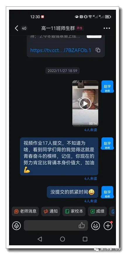 赵宇老师每次检查背诵,都会纠正学生错误读音,提醒交的不全的同学补交,如果再不交就打电话单独联系,保证每次作业人人都要交,人人不拖沓,人人都交全。对学生有鼓励有建议。