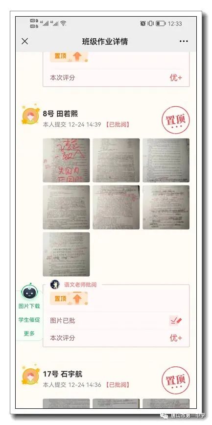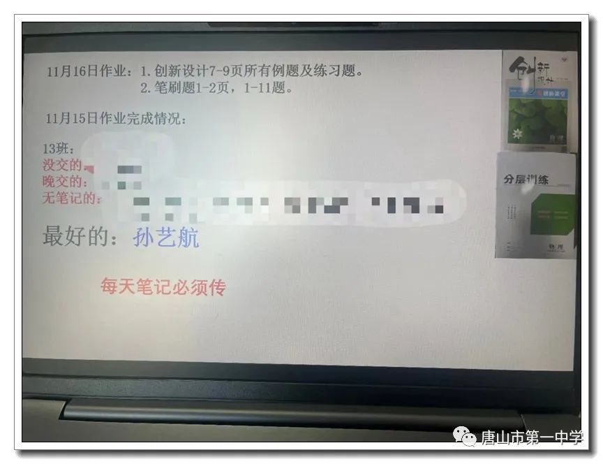 刘巍老师作为英才班班主任,对学生严格管理,事无巨细,使本班学生学习风貌和精神状态俱佳。刘老师记录每天作业提交情况,有作业总结,有优秀案例展示,学生的好成绩与刘老师的辛勤付出分不开。