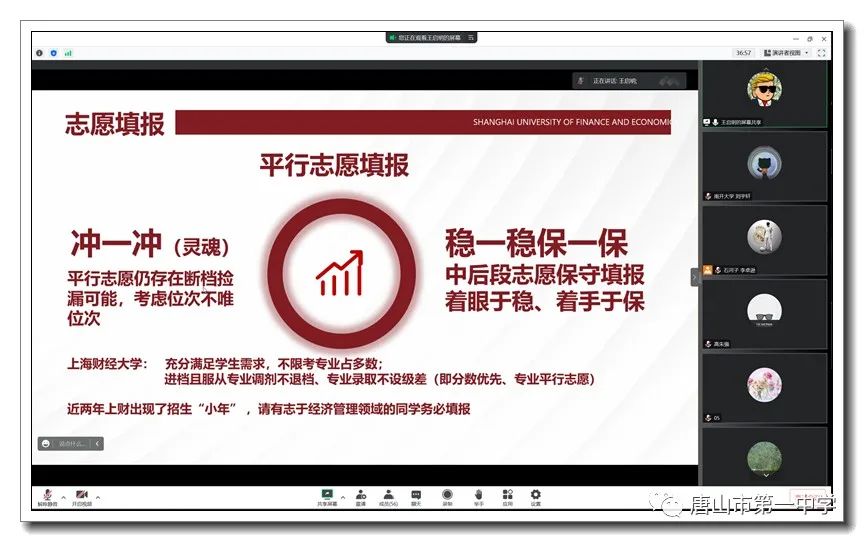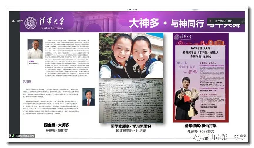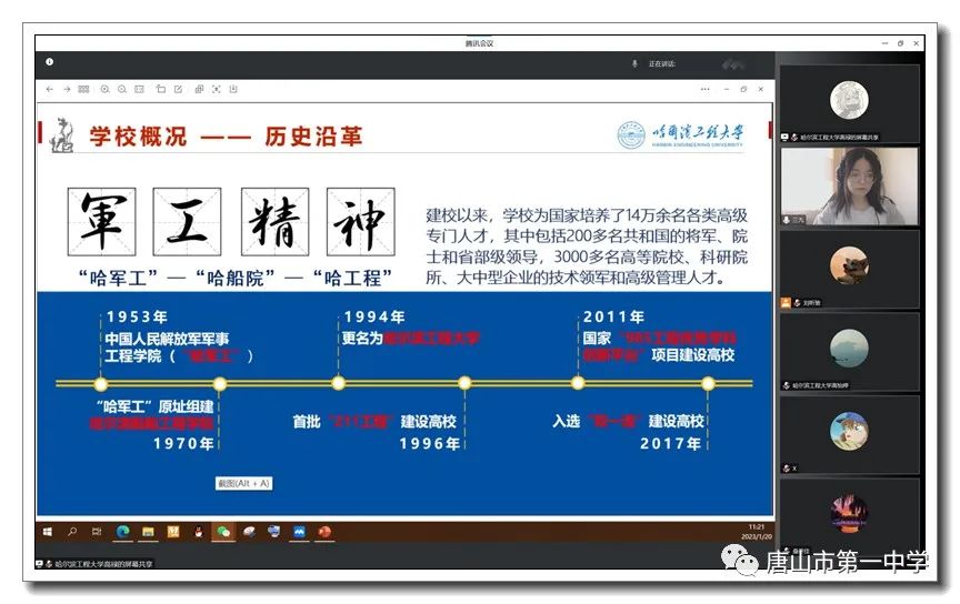 2023年1月18日、19日,唐山一中“常回家看看”校友宣讲系列活动如期而至,来自69所高校的近300名校友与高三年级的学弟学妹相聚云端,分享报考经验,解读专业优势,为学弟学妹的梦想蓄力护航。
