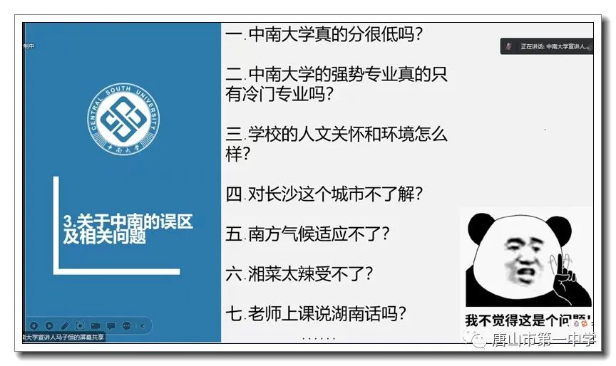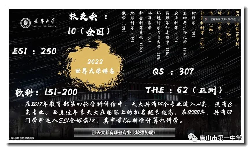 ——我们组七所高校的宣讲人分别从各学校的学科优势、校园环境以及学生未来的发展情况等方面向学弟学妹们做了详细讲解,传达了高校的热情与期望,本次活动圆满成功!祝愿唐山一中2023高考必胜!学弟学妹们金榜题名!