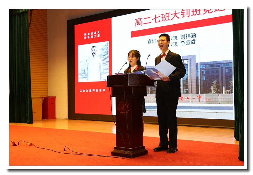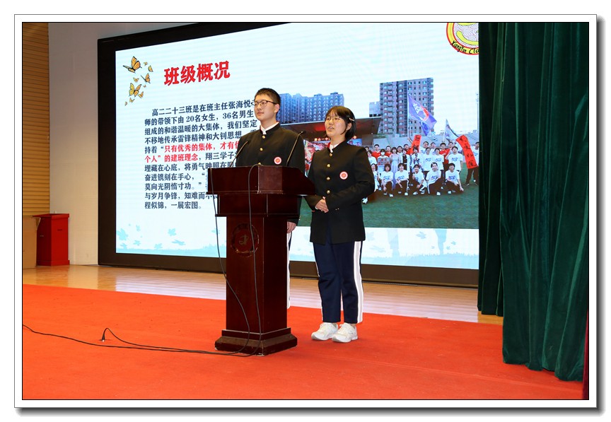 21组选手依序上场, 展示一年来各班争创大钊班雷锋班的成果:莘莘学子高效课堂,无声自习,执笔为刀,为理想大学努力奋斗;运动健儿们为了本班荣誉在运动场上挥洒汗水,奋力拼搏;志愿者们不畏深冬严寒,奉献力量,清扫积雪……或深入动情,或情绪激昂,或娓娓道来,形式多样,内容翔实。潮平岸阔催人进,风正扬帆正当时!一中学子是充满朝气与创造力的群体,兼具爱心与拼搏精神,必当以肩担当时代重任!