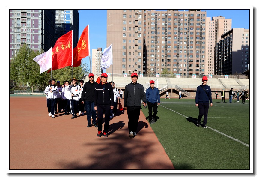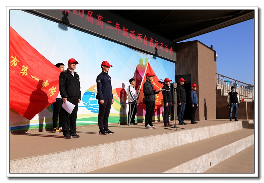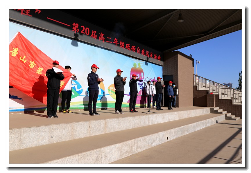 早上7:00,伴着清晨的阳光,远足队伍精神饱满,斗志昂扬,远足出征仪式在唐山一中操场盛大开幕。唐山一中党委书记周燕来、校长王卫国、副校长耿立平、副校长佘念利、纪委书记郭兴利、部分中层干部以及高二年级全体学生和班主任参加了出征仪式。