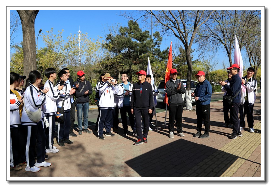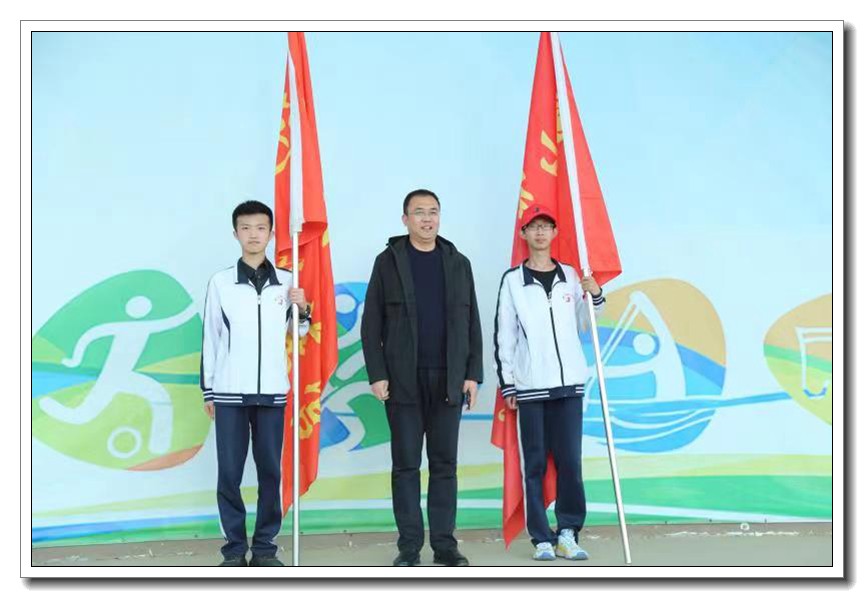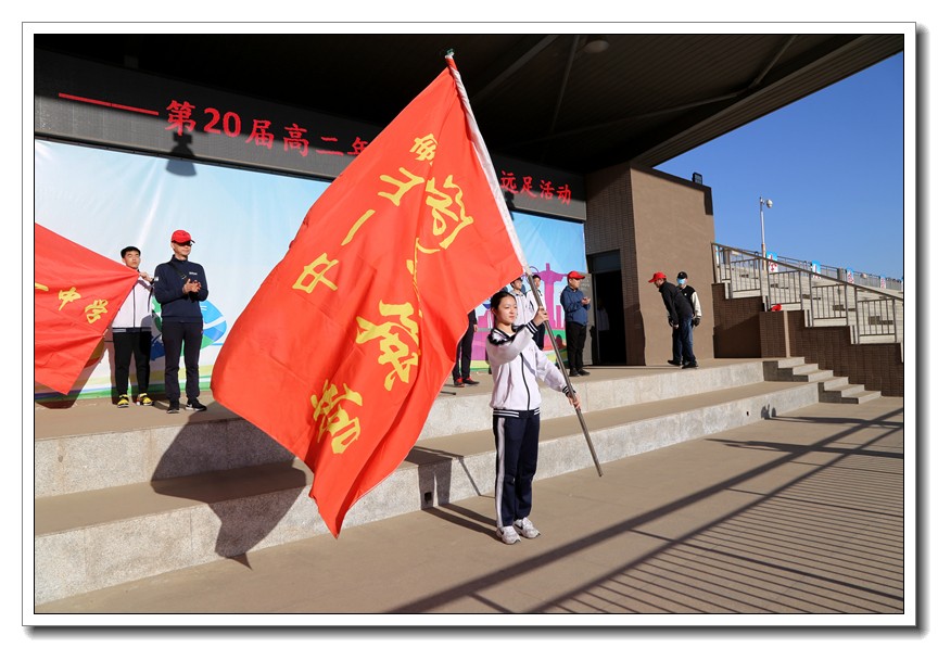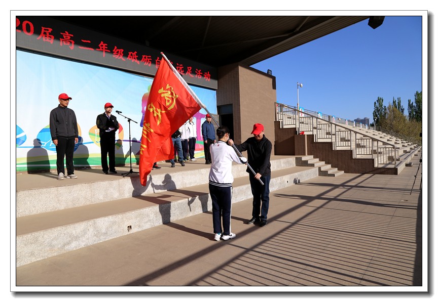 升旗仪式过后,校长王卫国作动员讲话。他鼓励全体师生要发扬艰苦奋斗的精神,互帮互助,圆满地完成此次远足实践活动。此后,副校长耿立平为远足队伍授旗。